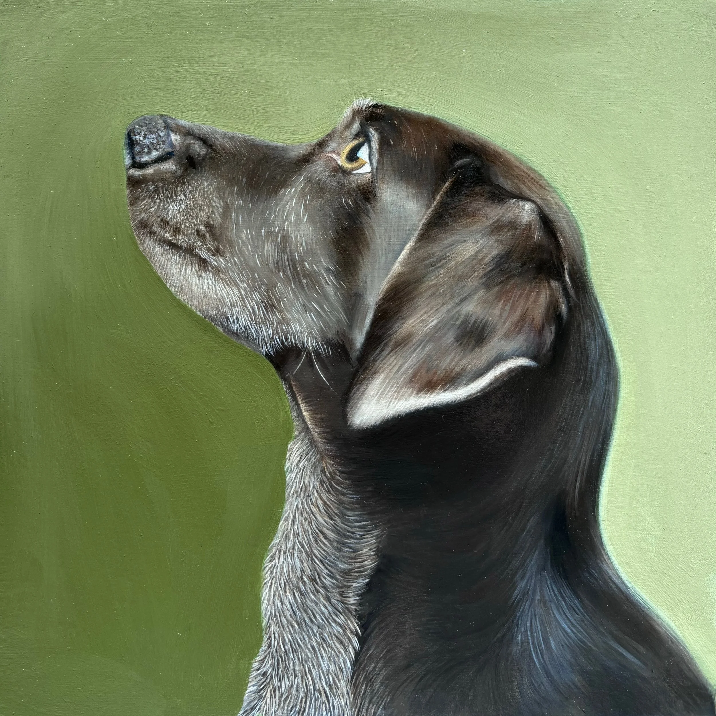 Pet portraits hold weight. Not just for the person who commissions them, but for the viewer too. At the Poochibald Art Prize opening, I watched people pause in front of Enduring, many leaning in to view the work closely. They didn’t know the dog, but they felt something. Because the viewer is offering more than a glance, they bring their story and their heart. Art, at its best, holds a mirror and reflects us back to ourselves. It honours what we’ve loved, what we carry, what we hope to hold longer. That emotional connection is what gives portraiture its power and that is why pet portraits matter.